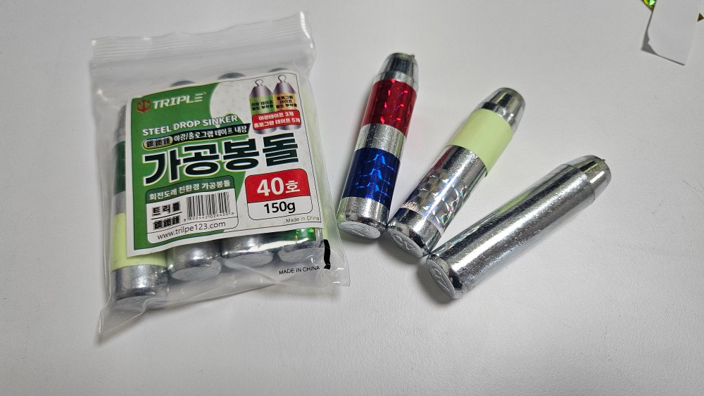 다가오는 돌문어 시즌에는 항상 별도의 야광테이프를 사용하여 봉돌이나 에기 등에 작게 붙이는 경우가 많았는데 트리플 가공봉돌을 구매하면 모두 한 번에 구성이 되어 간편할 것 같다. 문어, 외수질, 다운샷 등 다양한 낚시에서 사용이 가능하니 여러분도 사용해 보시길 추천드린다.